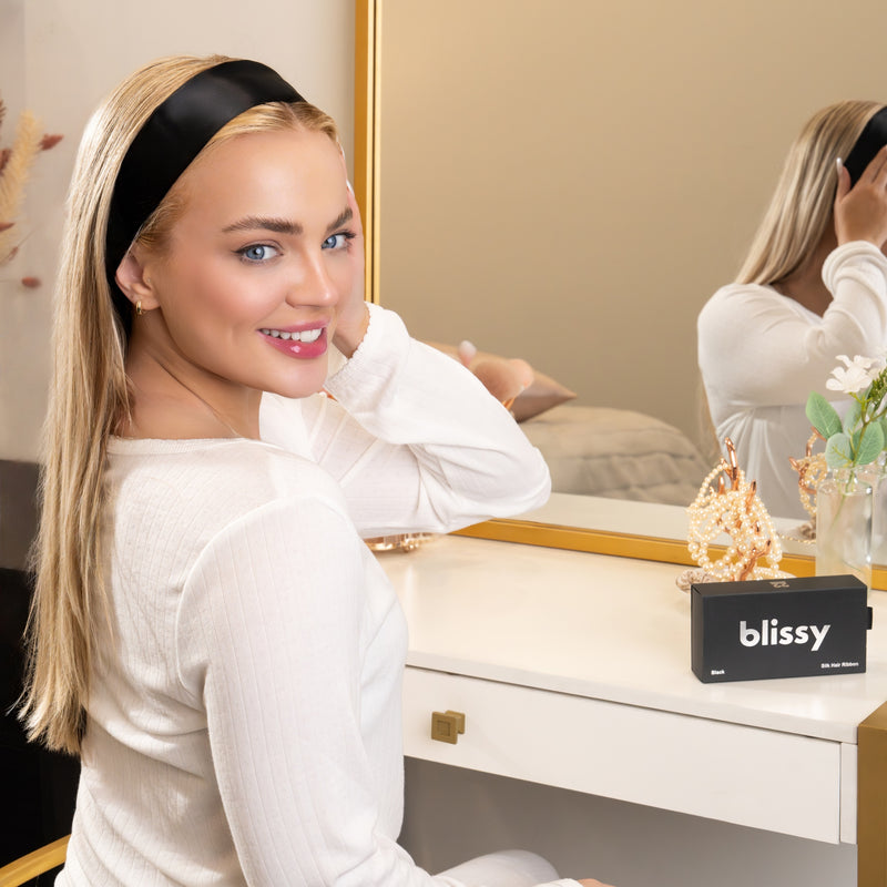 Add a touch of feminity and timeless style to your outfit. The Blissy Silk Hair Ribbon is a beautiful and versatile hair accessory made from the same fine 100% mulberry silk we use for our signature pillowcases. Nourish your hair with all-natural silk and avoid frizz, dents, or snagging caused by other hair accessories.Β