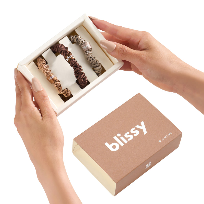 Perfect for ponytails, buns, and everything in between. Whether you're sleeping, styling, or on the go, Blissy Skinny Scrunchies are a healthier way to tie up your hair.
